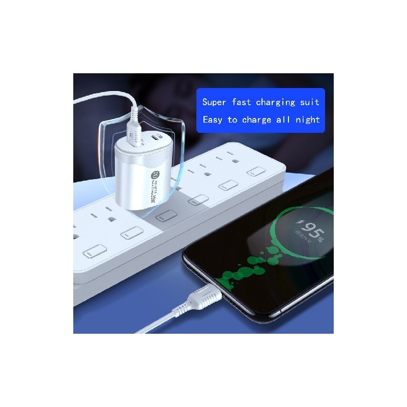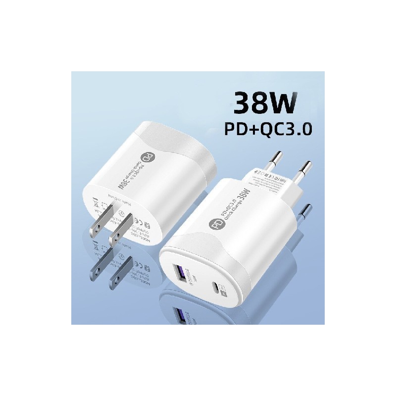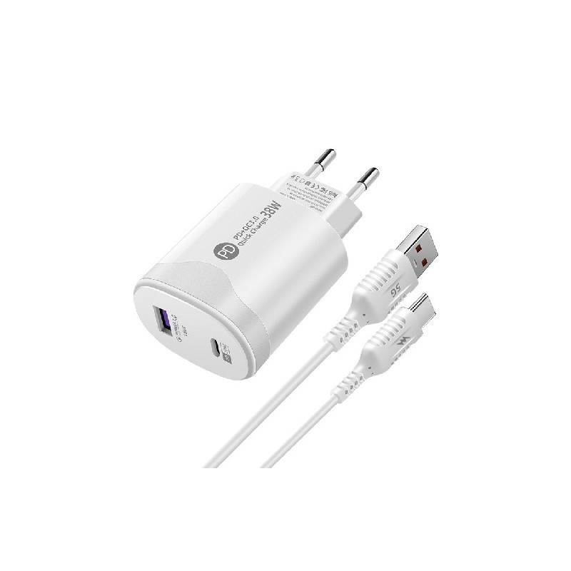 38W Fast Charge Type-c Android Charging Head Pd20w Qc3.0 Smart Phone Direct Charge Charger with Data Cable