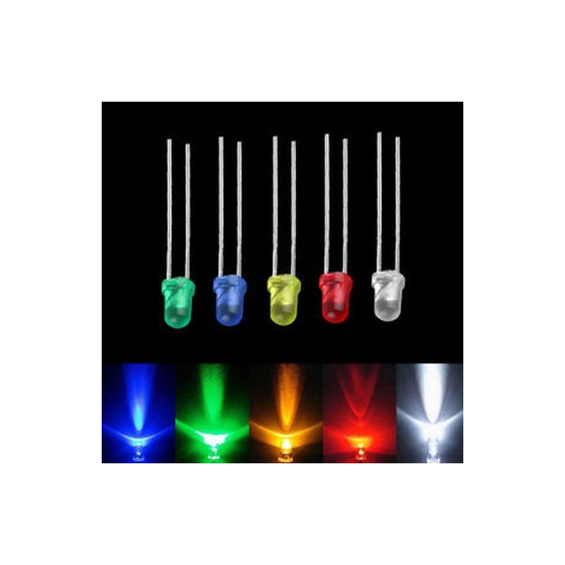 100pcs Lots 3mm Green White Red Blue Yellow LED Light Bulb Emitting Diode Lamps