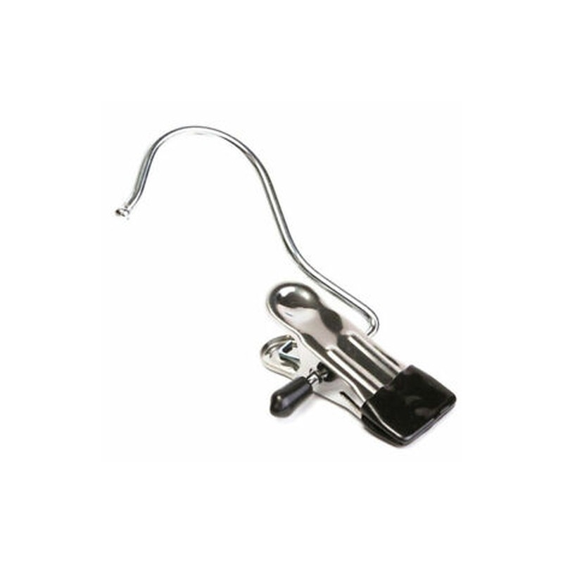 This strong metal clip hanger has rubber dipped clips to protect the product