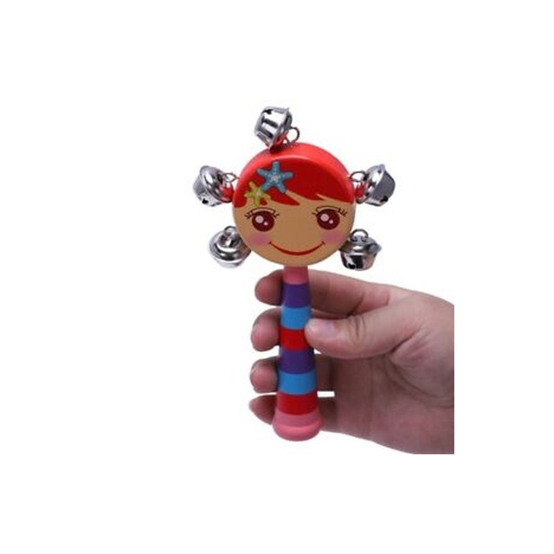 2X(1pc Baby Kids Rainbow Wooden Handle Bell Jingle Stick Shaker Rattle Toys Y3J2