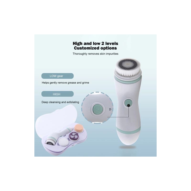 There are high and low 2 gear options, low gear can help gently remove oil and dirt, high-speed gear can achieve deep cleaning, exfoliation.