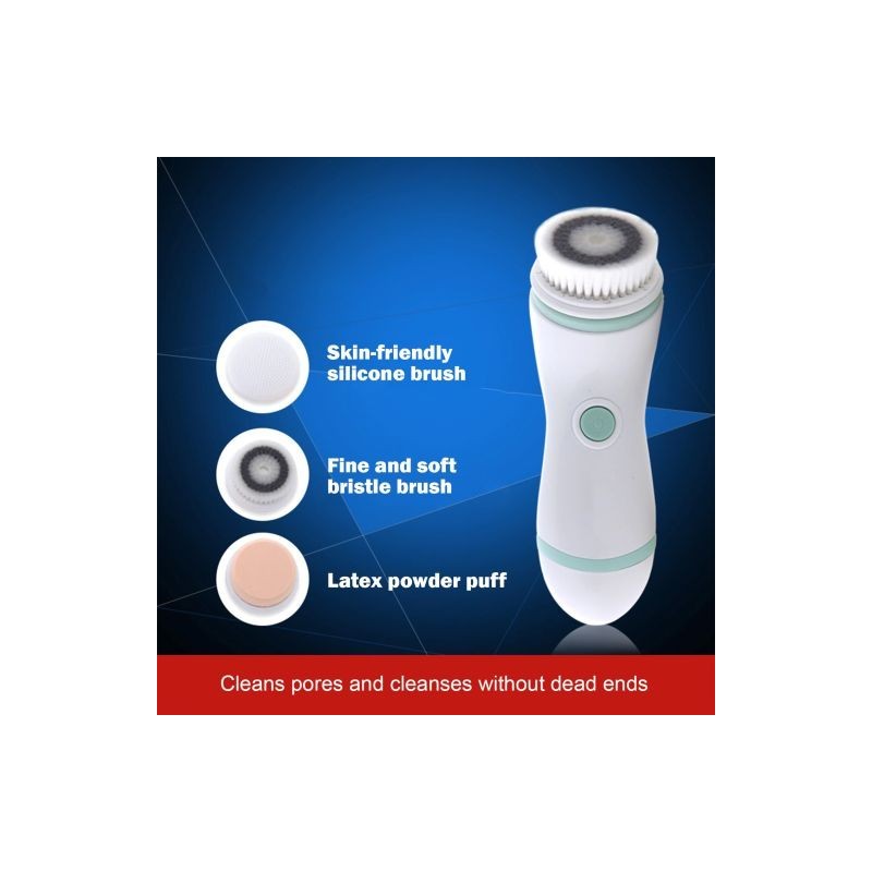 The product has 4 brush heads, 1 soft fine bristle brush, 1 latex puff brush head, 1 cleaning brush head, 1 silicone brush head, you can replace the brush head according to your own needs.