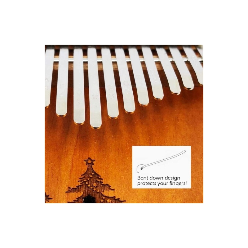 5X((often collated with a resonator) with attached staggered tines, played by holding the instrument in the hands and plucking the tines with the thumbs. Just play with two thumbs can make a wonderful sound.