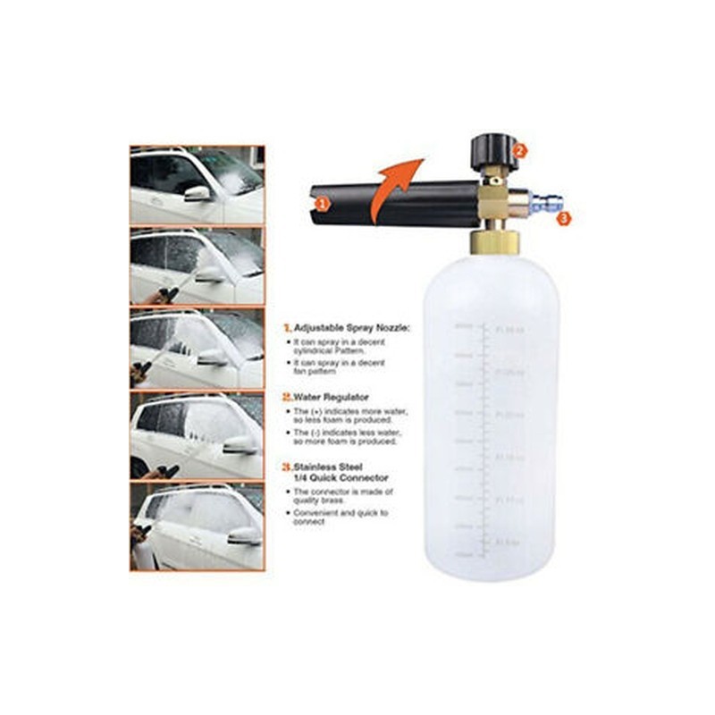 Variable, adjustable spray nozzle for accurate mixing and foam generation. You can connect with the pressure washer gun, then used to clean your items by jetting foam.