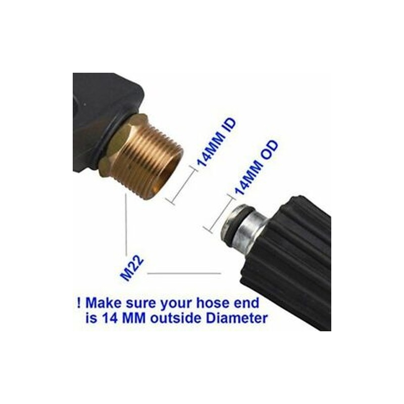 Please make sure your pressure washer hose is Metric M22-14mm inner connector.