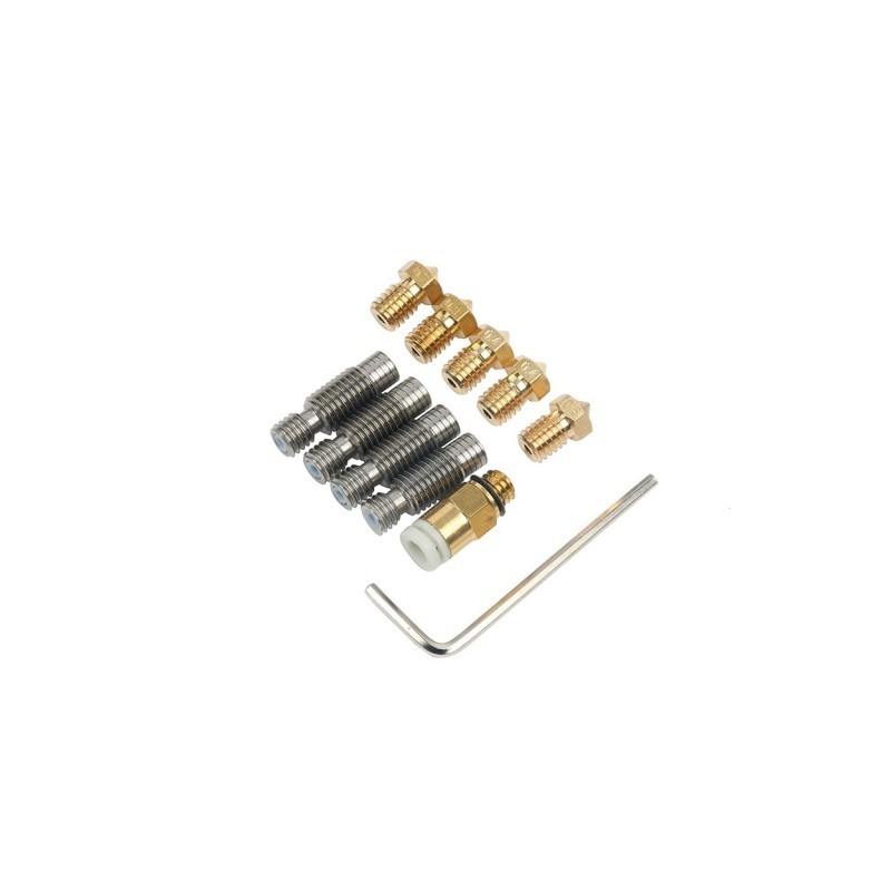 6X(All Metal Hotend 12v/40w/1.75mm/0.4mm Extruder Full Kit(print head fan fan cover PTFE tube tube fitting ), 5 pcs Extruder Brass Nozzle Print Head(1x0.2mm/1x0.3mm/2x0.4mm/1x0.5mm) , 5 Pcs Stainless Steel Nozzle Throat and M4 Hex driver