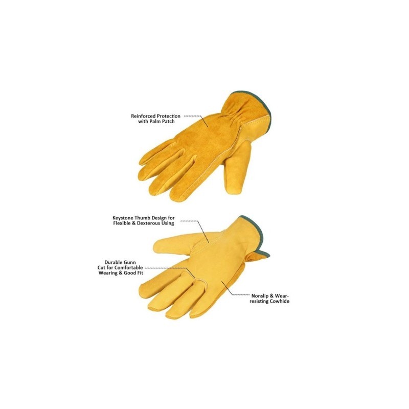 Perfect cowhide gloves for gardening, protect your palms and wrists from dirt, dust, mud and impurities, from scratches and broken nails or other injuries.