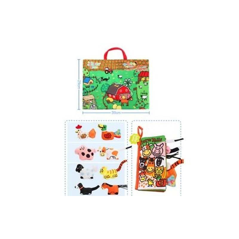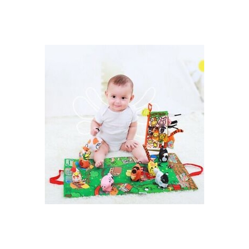 6X(Jollybaby Baby 3D Scene Farm Doll Cloth Book With Drama Pad Baby Rattle U6C6