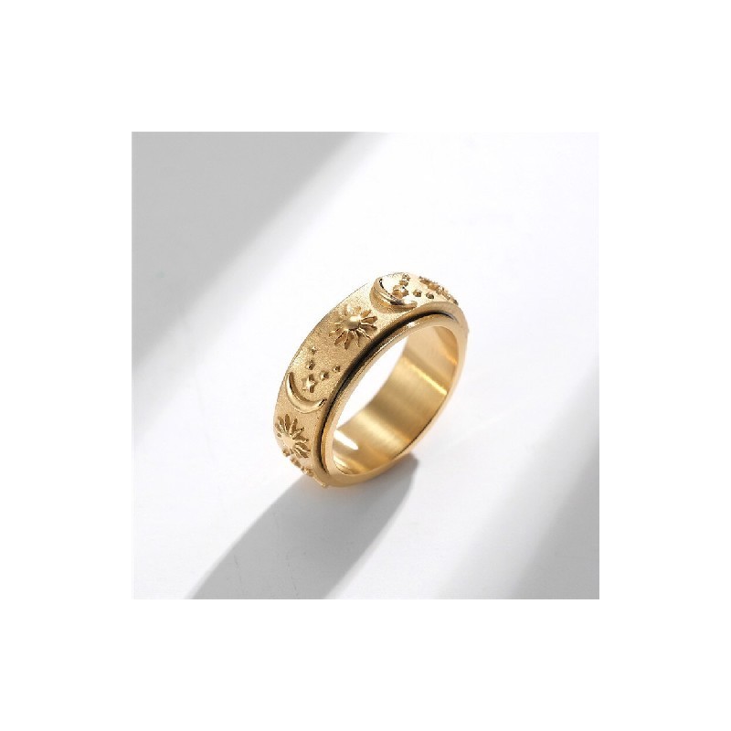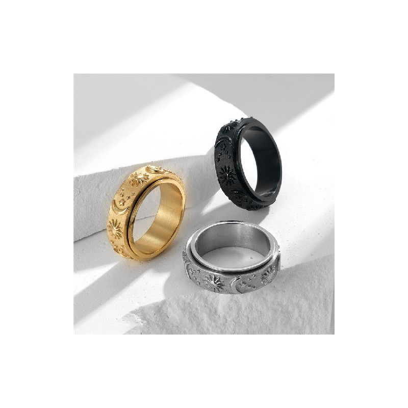 Punk Vintage Star Moon Sun Ring for Men Gold Silver Color Retro Stainless Steel Rotatable Ring Finger Jewellery