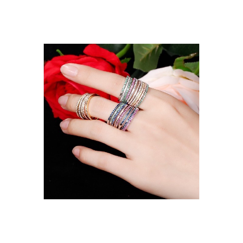 CWWZircons 3 db Mix Colors Női CZ Stones Eljegyzési Jegygyűrű szett Rózsa arany színű Divat Híres márka Gyűrűk Ékszer R093