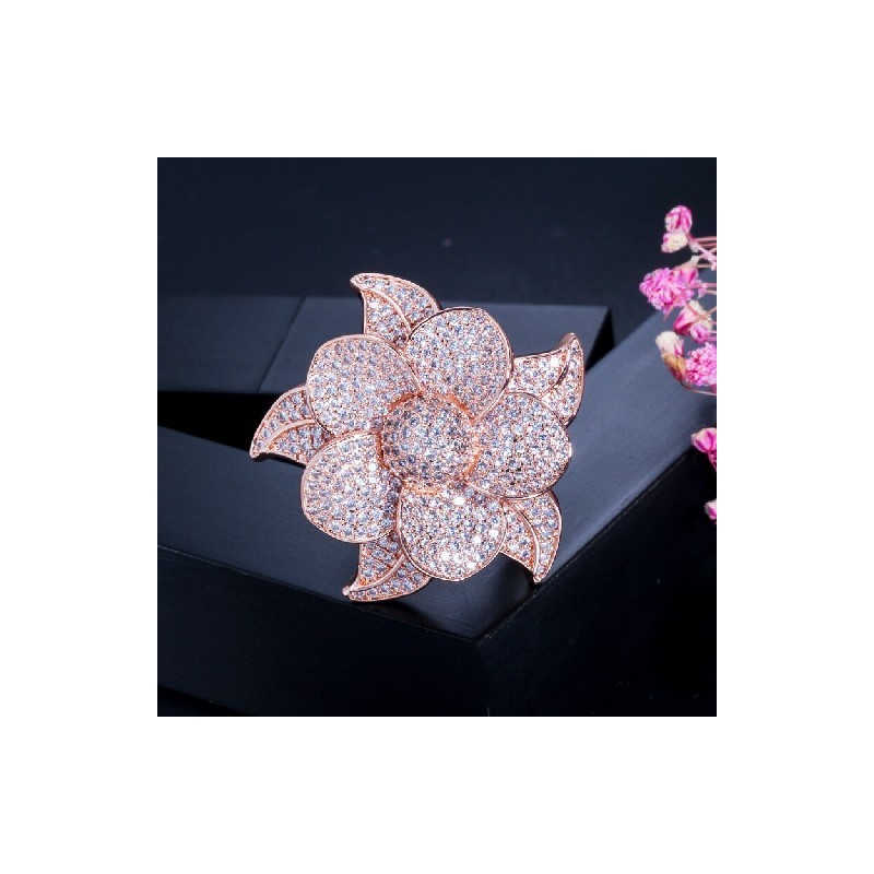 CWWZircons Luxury Flower Leaf Micro Pave Cubic Zirconia Stone Big Rose Gold Color Bridal Wedding Party Finger Rings Jewellery R124
