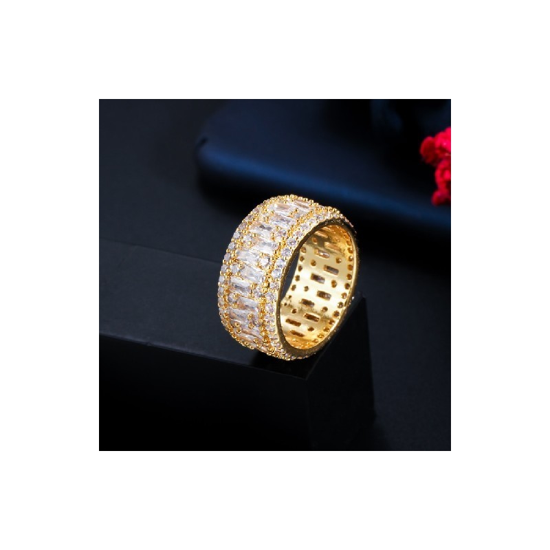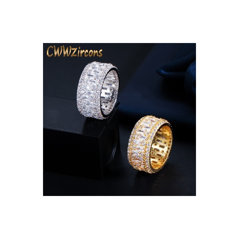 CWWZircons luxus, teljes köbös cirkónia burkolt sárga arany színű nagy kerek gyűrűk nőknek, esküvői zenekar ékszer R171