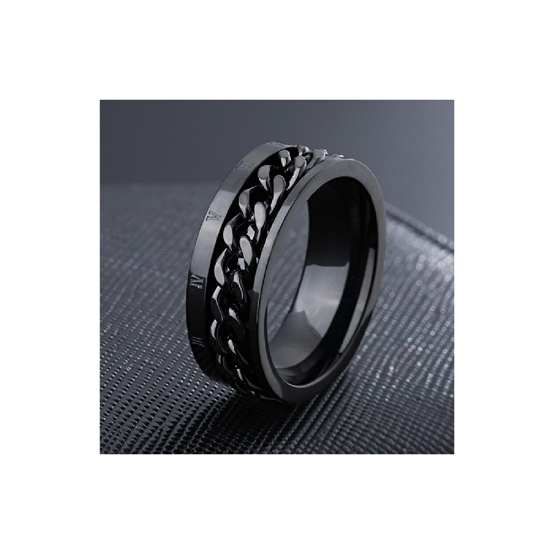 Black Roman Numerals Men Rings Punk Vintage Stainless Steel Rotatable Spinner Chain Rings For Men Jewellery Gift