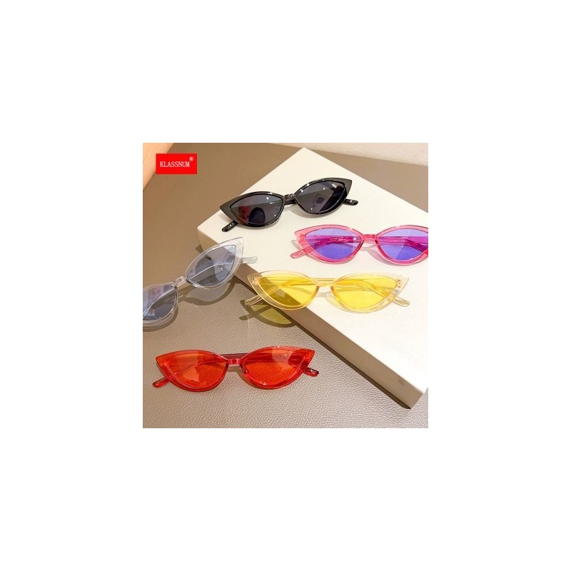 KLASSNUM 2023 Cat Eye Sunglasses Women Vintage Candy Color Lens Outdoor Shades UV400 Trendy Brand Designer Travelling Eyewear