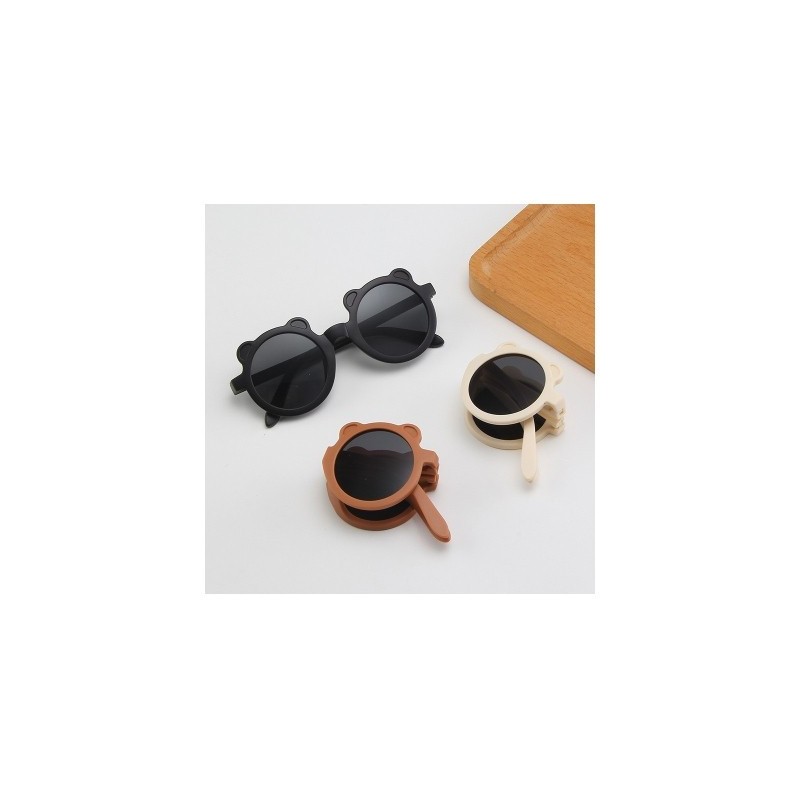 KLASSNUM Folding Sunglasses Children Cute Bear Round Goggles For Boys Girls Retro Shades Casual Kids Eyewear UV 400 Protection