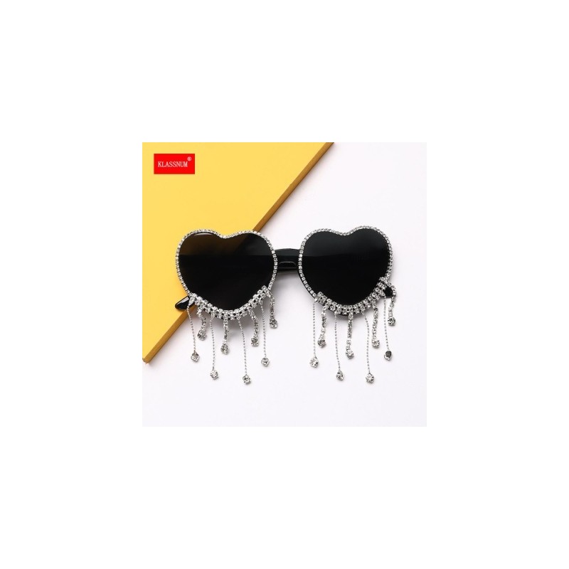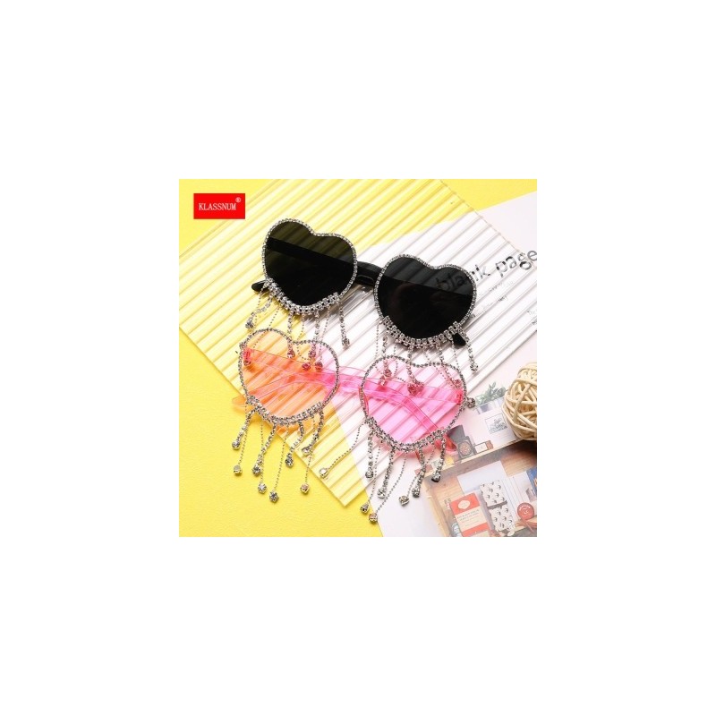 Unique Party Favor Heart Sunglasses with Diamond Tassel UV400 Protection rend Peach Heart Frameless PC One-piece Sunglasses Decor