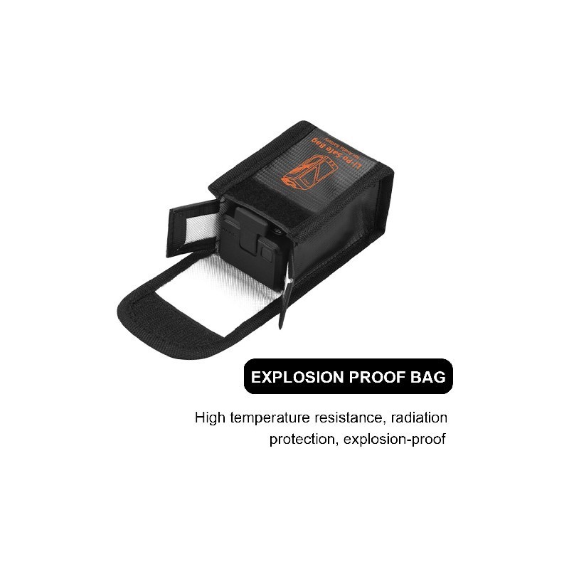3. Application: Batteries safety charging, traveling, transportation, and storage. When you are not using your drone, please store your batteries inside the protection bag. This will reduce the chances of damage in the event of a fire.