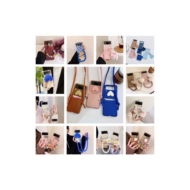 Fashion Cute Phone Case for Samsung Galaxy Z Flip 3 Ultra Thin Protection Cover for Galaxy Z Flip 3 5G SM-F711B Lanyard Chain