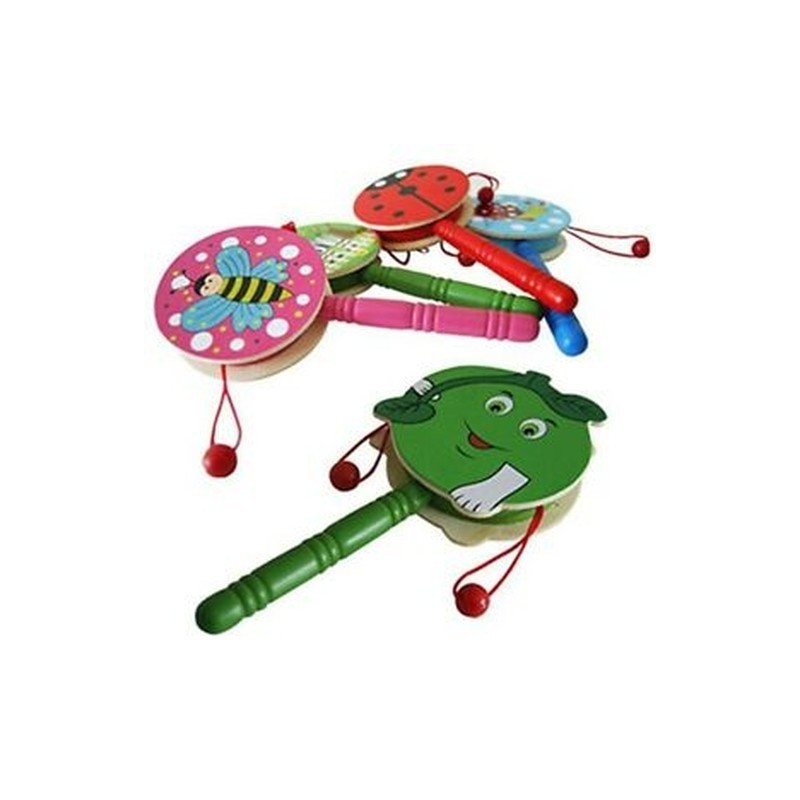 Baby Kid Wooden Musical Hand Bell Shaking Rattle Drum Toy F2O2