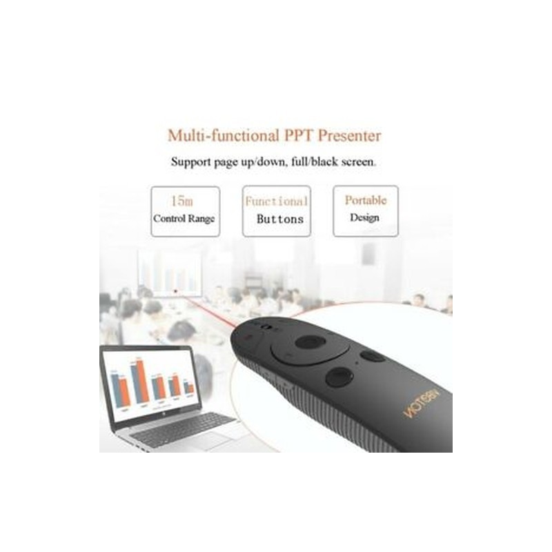 1. 2.4GHz radio frequency and 15m control range, it will greatly facilitate your PPT presentation. 2. Support multi-functions, like page up/down, full/black screen, slide show, mark function, volume control, mouse control and more. 3. It not only can be controlled to present PPT, but also can work as the air mouse, so you can control it to surf the Internet, watch TV, listen to music and play games, etc.