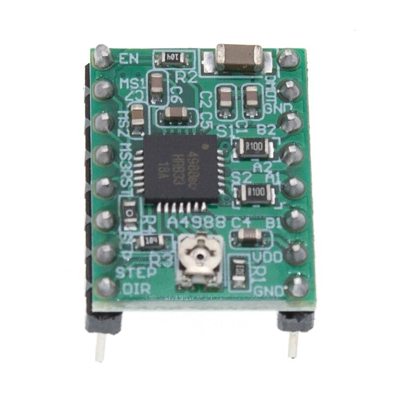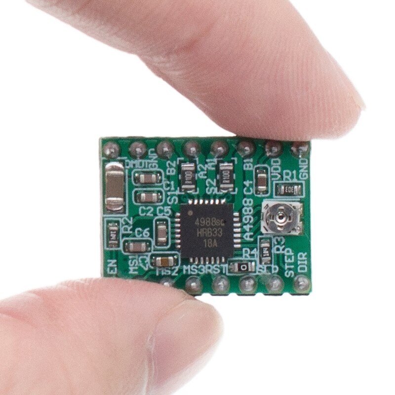 A4988 is a complete microstepping motor driver with built-in translator for easy operation. This product is available in full, half, 1/4, 1/8 and 1/16 step modes operate bipolar stepper motors, output drive capacity of up to 35 V and ± 2 A. A4988 includes a fixed off-time current regulator, the regulator in slow or mixed decay modes. A4988 converter is the key to the easy implementation. As long as the "step" input inputting one pulse drives the motor one microstep. There are no phase sequence tables, high frequency control lines, or complex interfaces to program. A4988 interface is very suitable for complex microprocessor is unavailable or is overburdened.