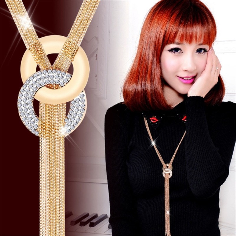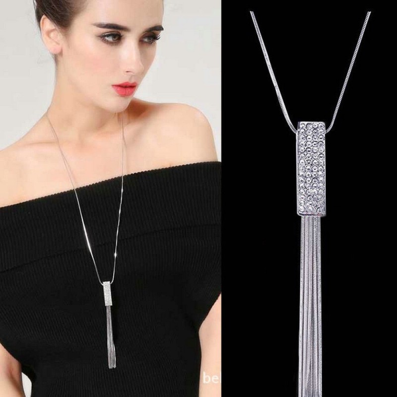 Women's Fashion Crystal Pendant Long Tassel Chain Sweater Necklace Jewellery Gift