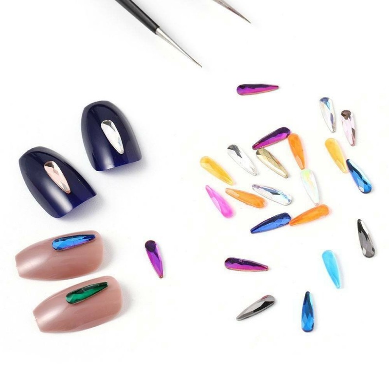 2. A még nedves körömlakkra csipesszel vigyél fel ízlés szerint a kristályokból és nyomd rá!