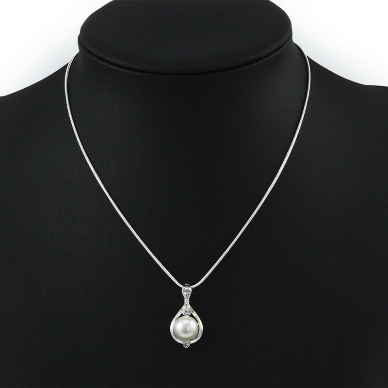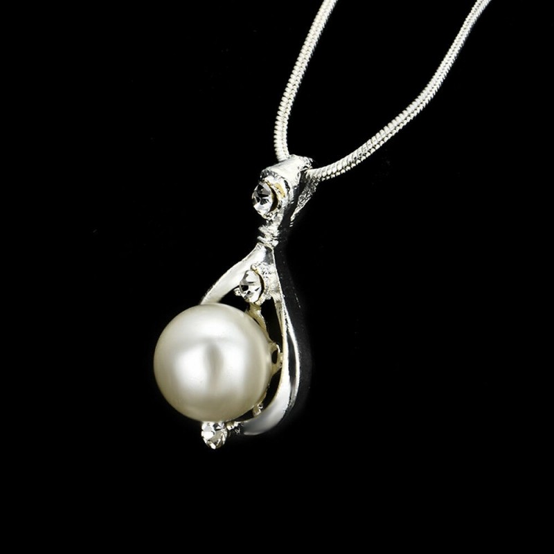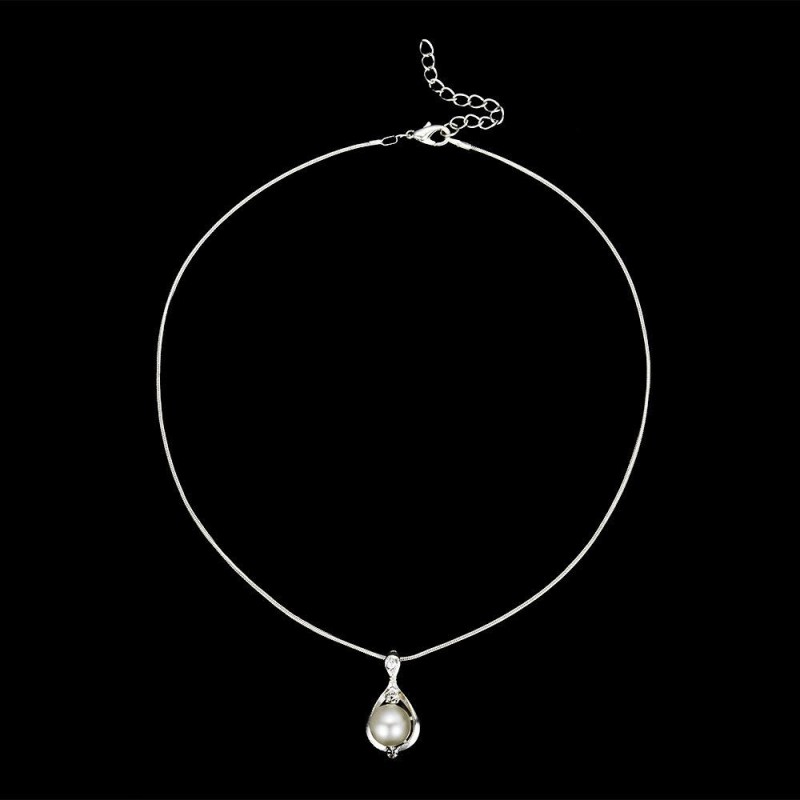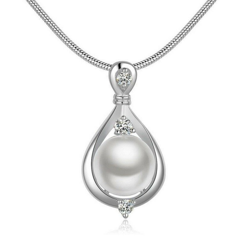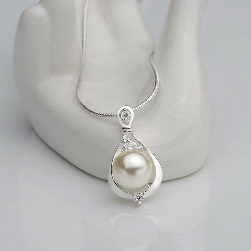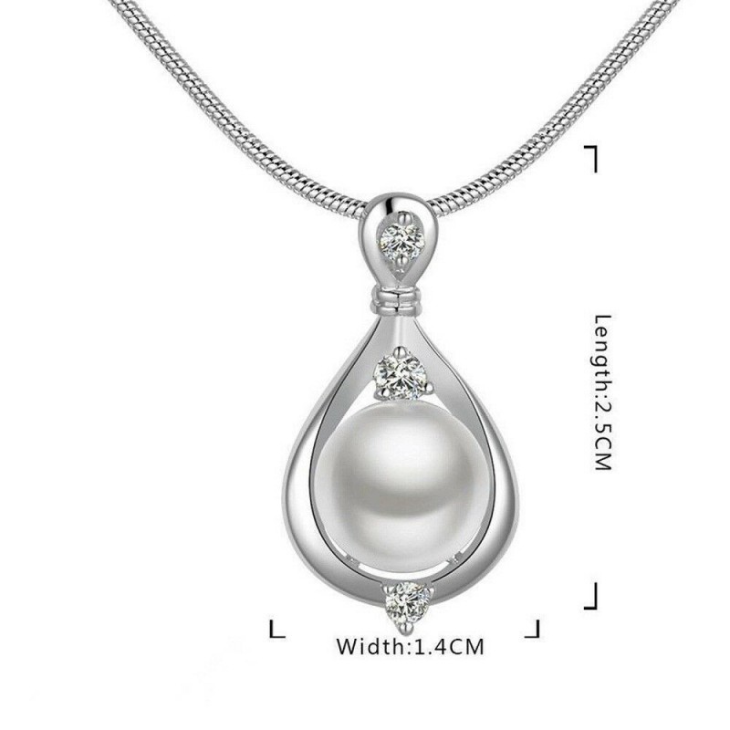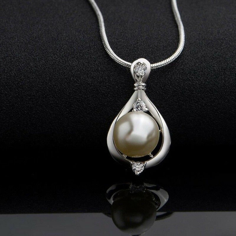 Vintage Women 925 Silver Crystal Pearl Charm Pendant Necklace Chain Jewellery Gift