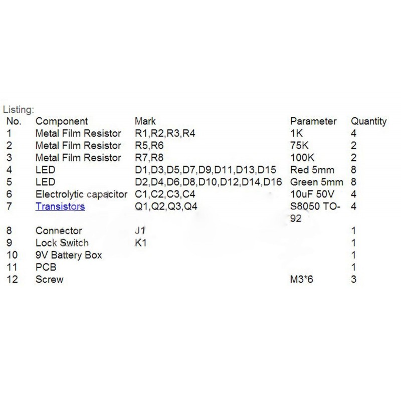 áramköre 16 db LED-ből (fénykibocsátó dióda).