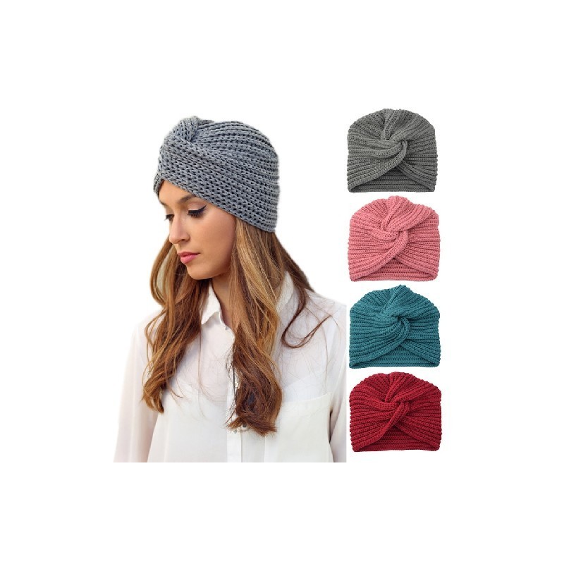 Boho Fashion Cross Knotted Bandana Muslim Hat Winter Women Warm Knitting Turban Cap 10 Colors Female Soft Indian Hat