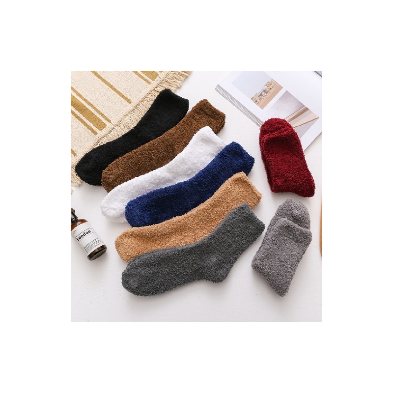 Winter Warm Socks Women Thick Coral Fleece Warm Socks Soft Elastic Fluffy Socks Indoor Floor Tube Sox Pure Colors