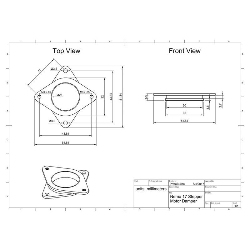 3D Printers see a 5-10dB reduction in noise when used on X and Y Axis steppers with the vibration damper for NEMA 17