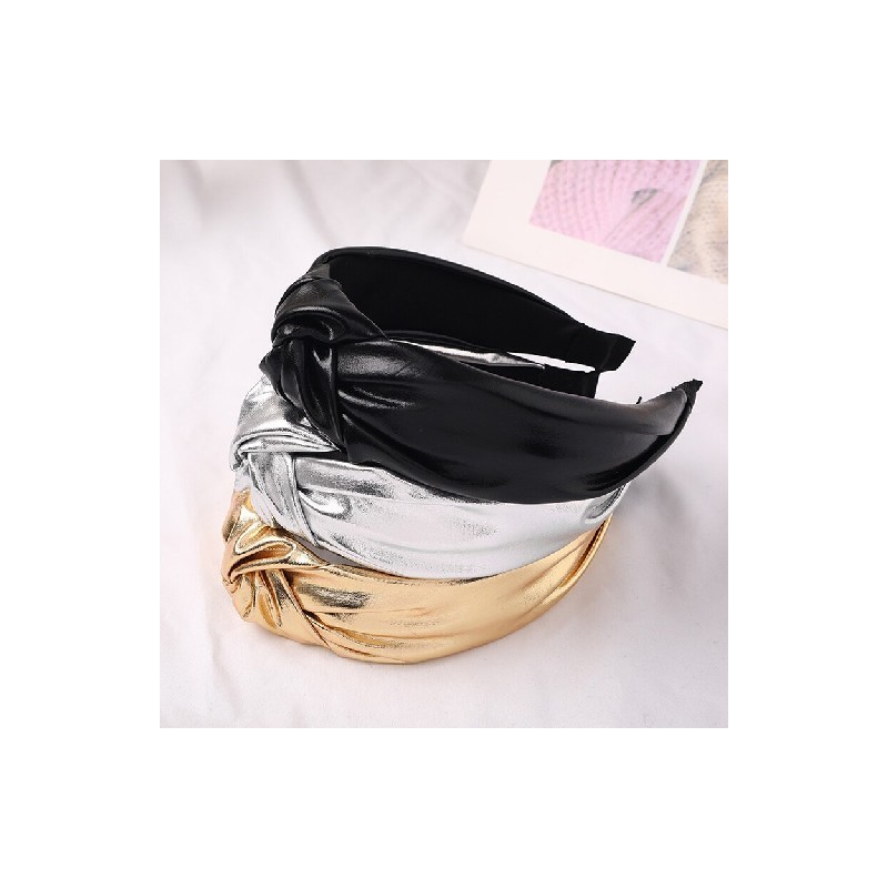 2022 PU leather Headbands Gold Silver Knotted Hairbands Glitter Headband Solid Color Leather Hair Hoop Women Hair accessories