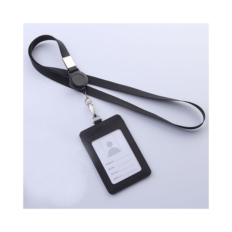 Retractable ID Card Badge Holder Lanyard Set Leather Business Card Cover Case School Office Supplies Student Card Bus Card Case