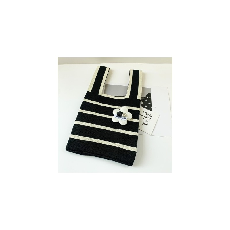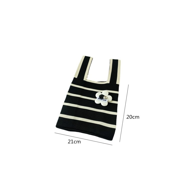 Handmade Knit Handbag Women Mini Knot Wrist-Bag Female Casual Color Wide Stripe Plaid Tote Bag With Flower Student Shopping Bag