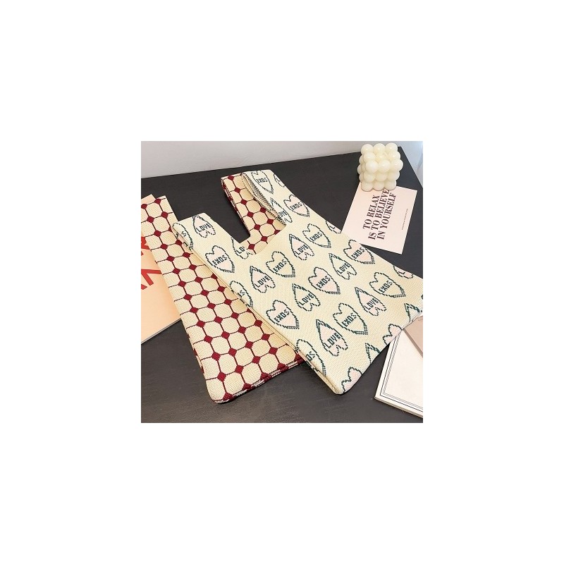 Summer Fashion Daily Knitted Handbag Personality Love Plaid Color Patchwork Single Shoulder Wrist Bag Portable Shopping Bag Gift