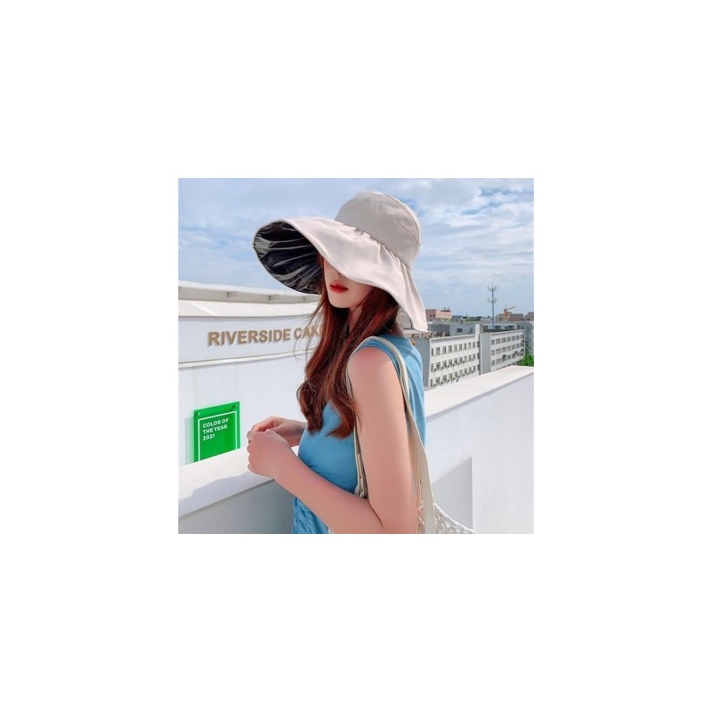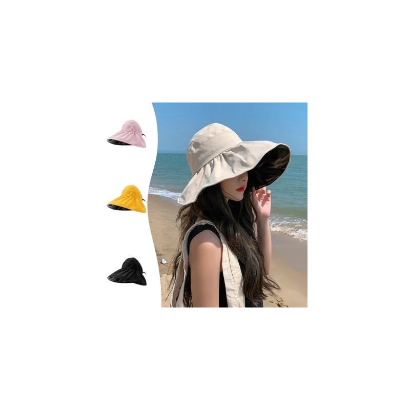 Summer Double-layer Fisherman Hat Women's Empty Top Beach Sun Hat Outdoor UV Protection Foldable Wide Brim Sunshade Bucket Caps