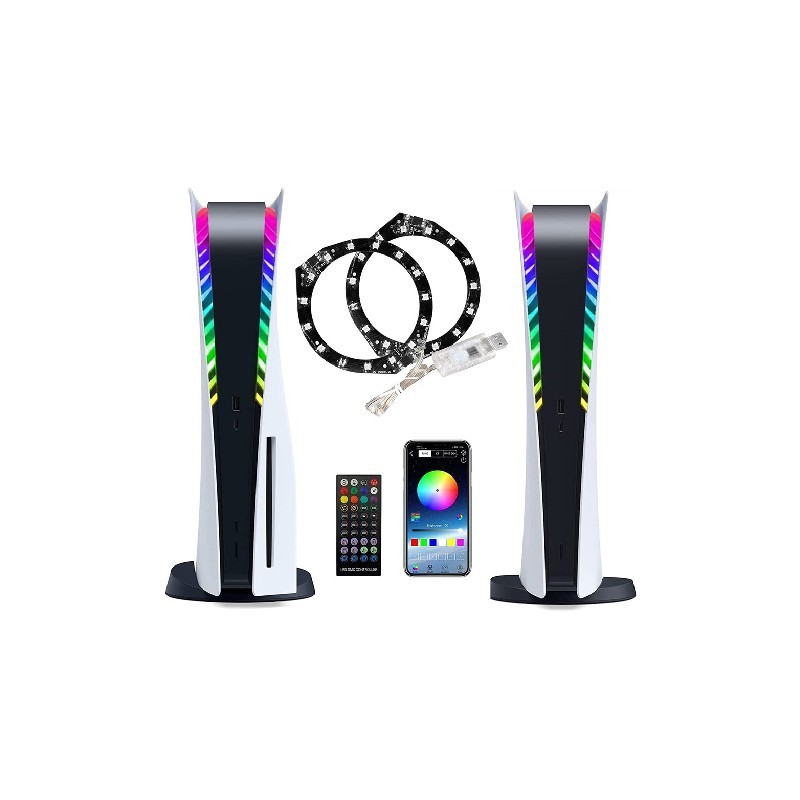 RGB LED Ring Strip Lights for PS5 Game Console 8-Color Pickup Atmosphere Light Bar Strip APP USB Remote Controller For PS5 Host