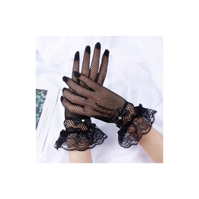 Sheer Fishn Net Full Finger Mittens Rhinestone Bow Lace Design Black White Summer Uv-proof Driving Gloves Mesh Fishnet Gloves