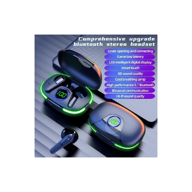New PRO80 Stereo Bluetooth Headset TWS5.1 Intelligent Touch LED Digital Display Cool Breath Light Game