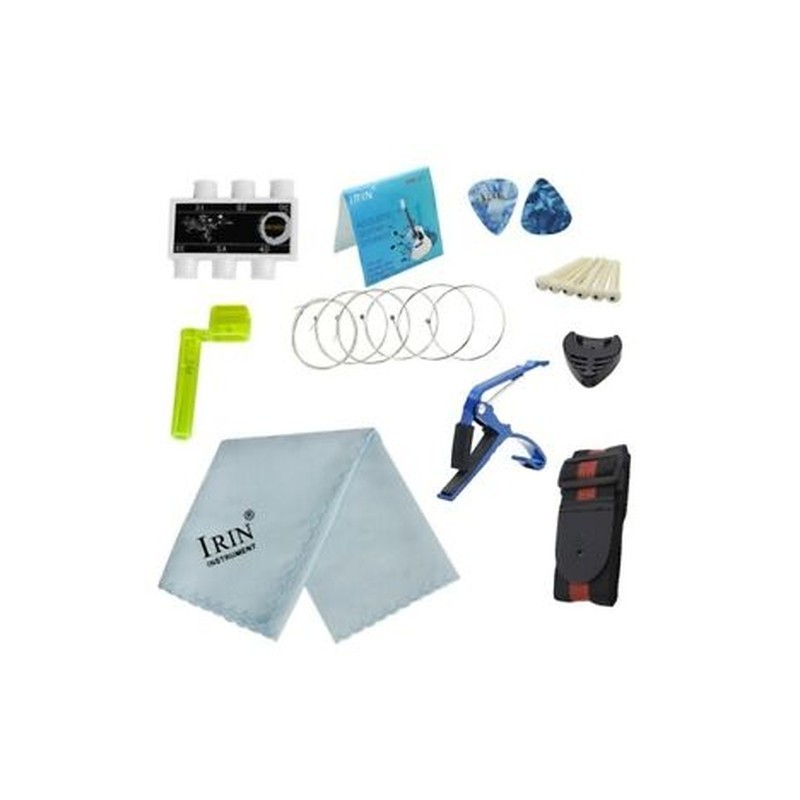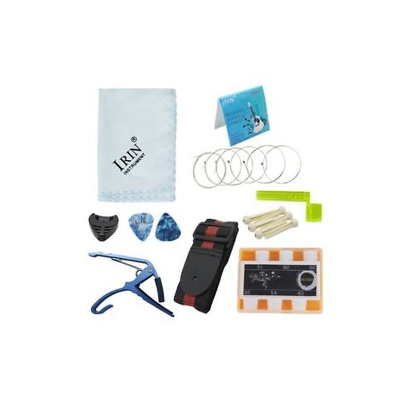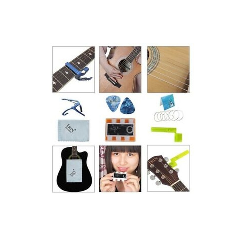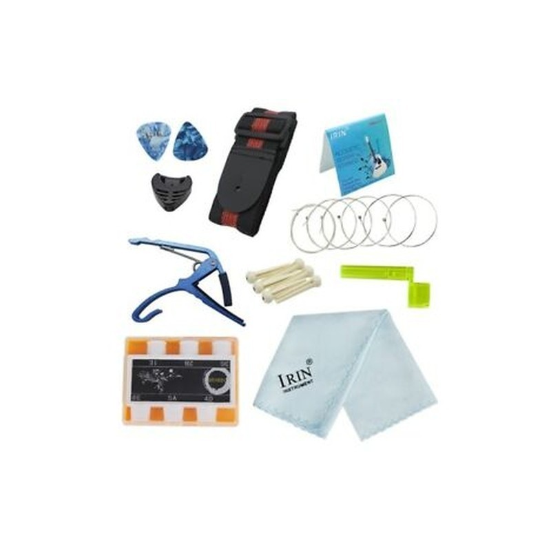 4X(Irin 9-In-1 Acoustic Guitar String Set Pitch Pipe Tuner Picks Case StrapU6L3