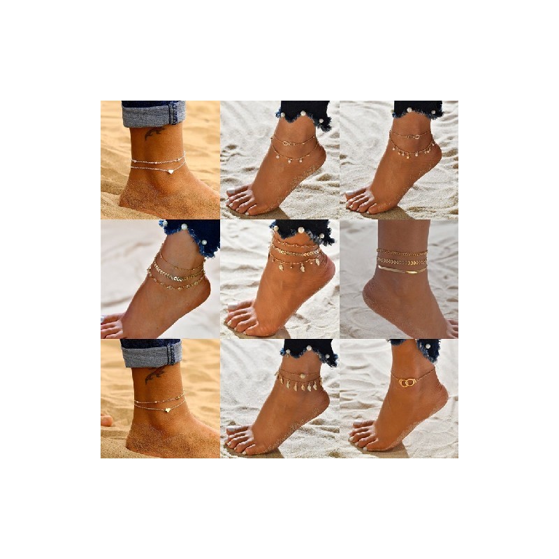 Arany ezüst színű vintage bokalánc szett női többrétegű állítható bokalánc karkötő lábon lábon strandékszer