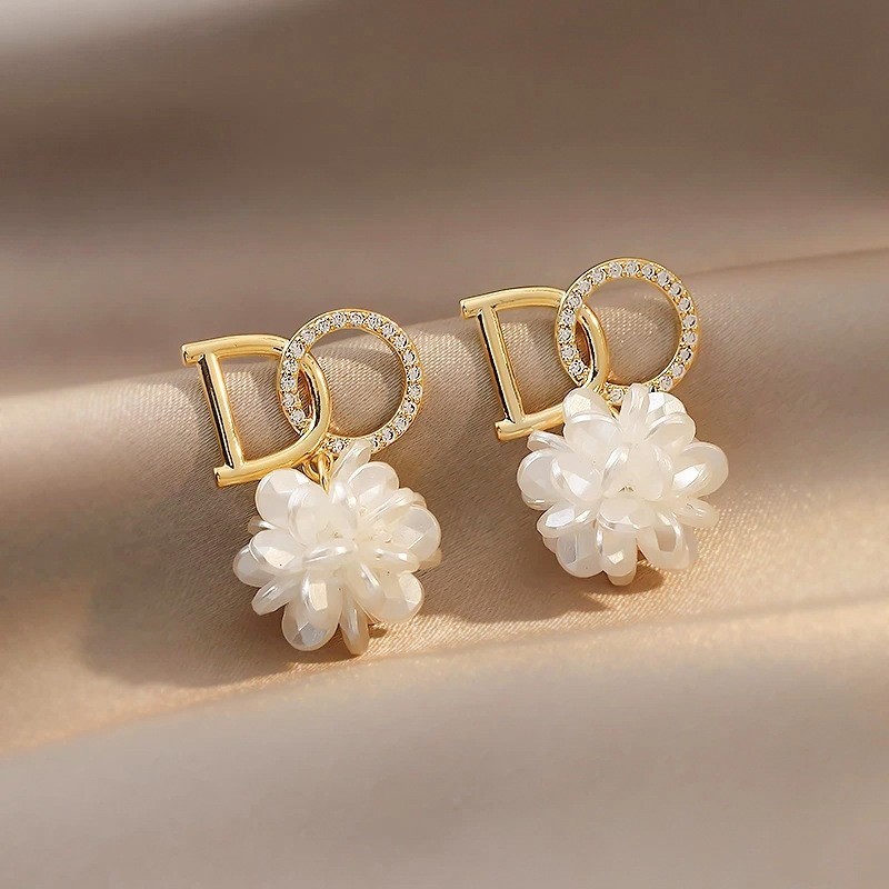 Luxury Crystal Pearl Gold Color Drop Earrings For Women Girl 2022 Elegant Personality Shiny D Letter Earring Fashion Jewellery