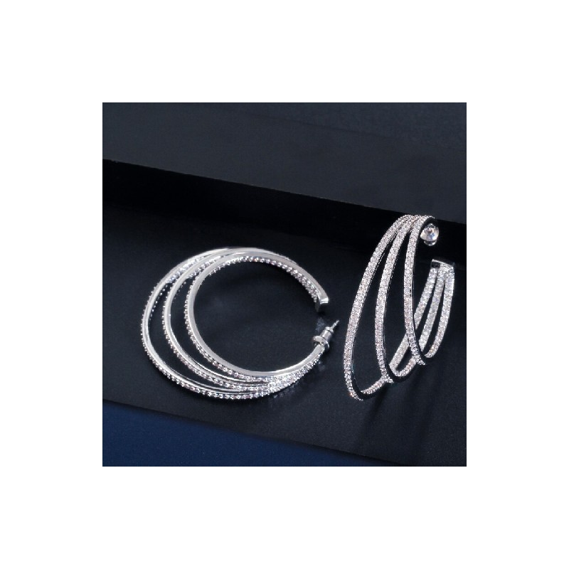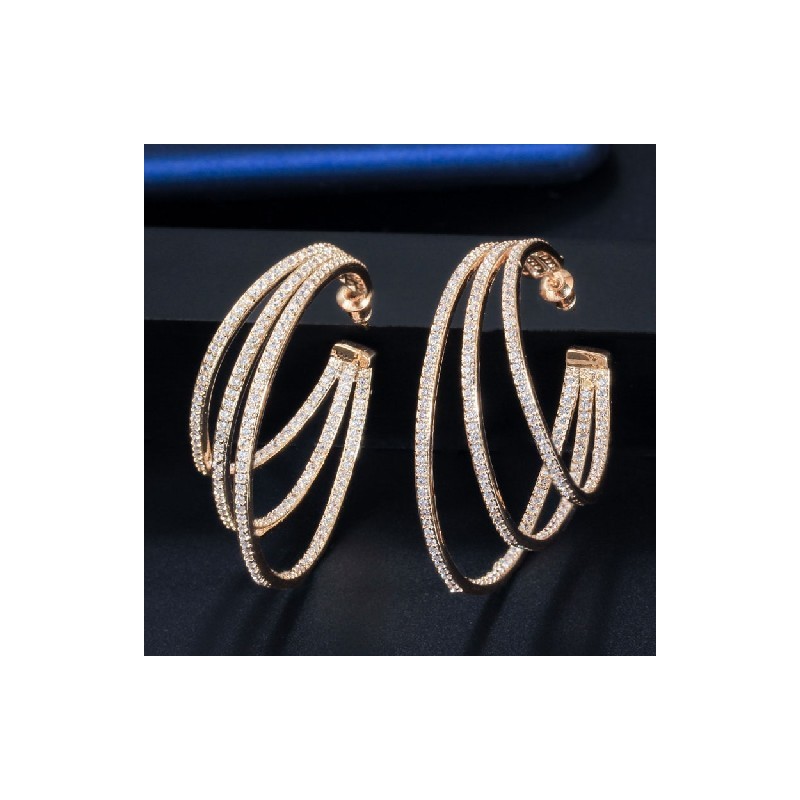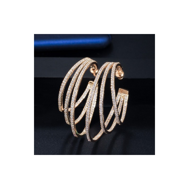 CWWZircons 3 kör alakú Bling köbös cirkónia Pave luxus sárga arany színű nagy kerek, geometrikus három karikás fülbevaló nőknek CZ581