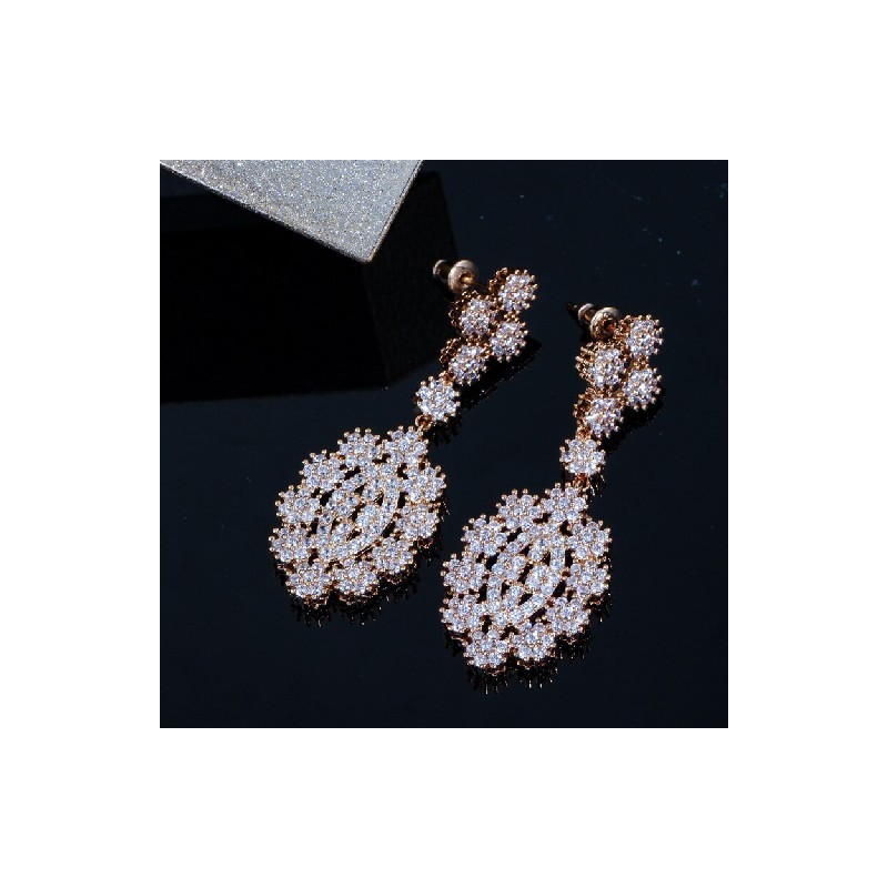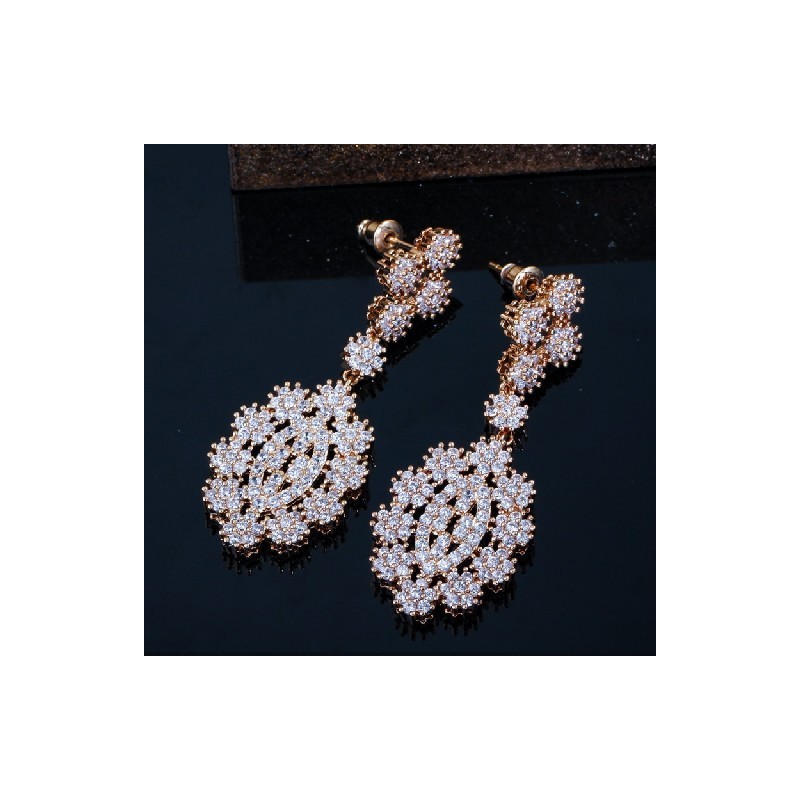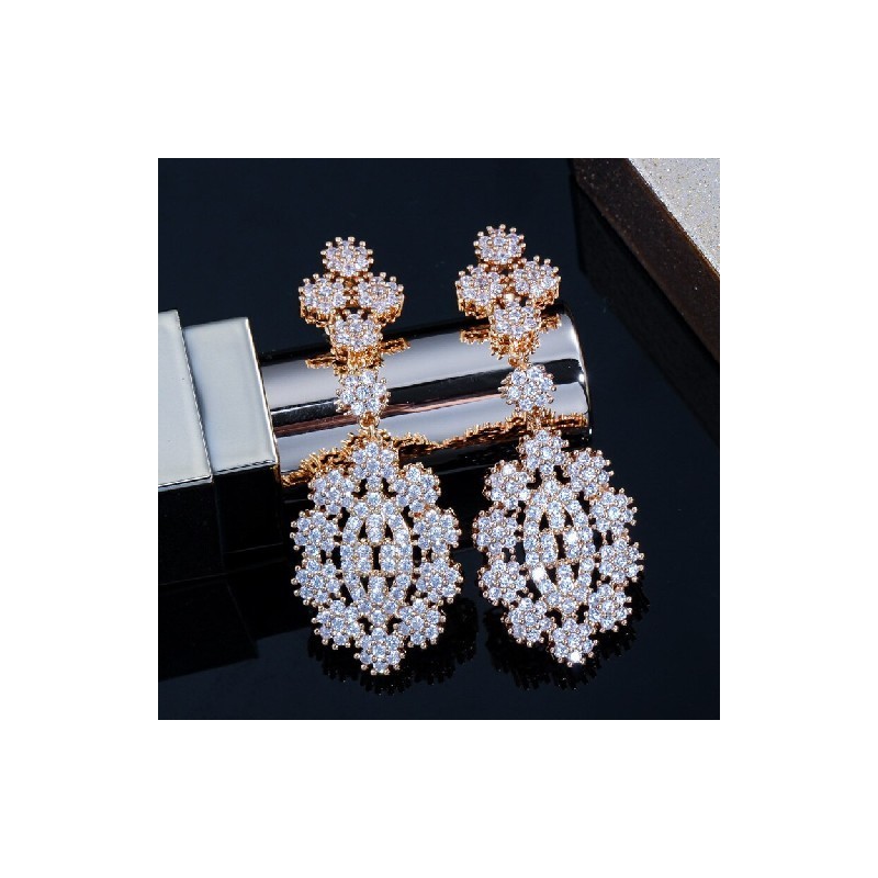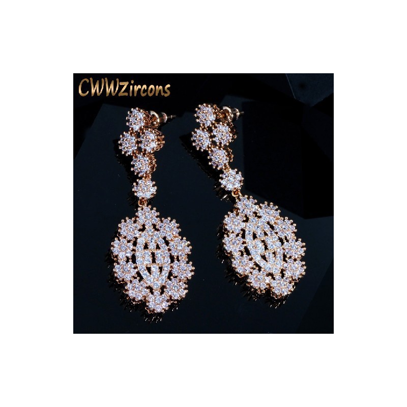 CWWZircons Shiny Micro Pave Cubic Zirconia Stones Bridal Long Dangle Drop Gold Color Earrings For Wedding Party Jewellery CZ002