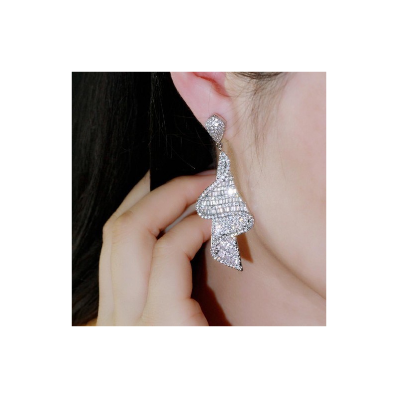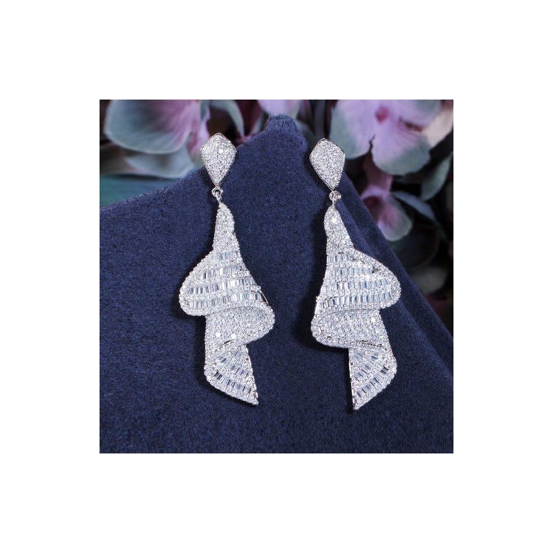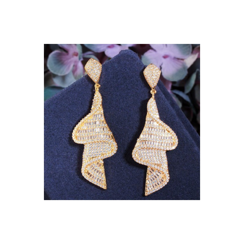 CWWZircons Geometrikus csillogó díszes fehér cirkónia nagy, hosszú leejtő fülbevaló nőknek Dubai arany színű menyasszonyi ékszer CZ803