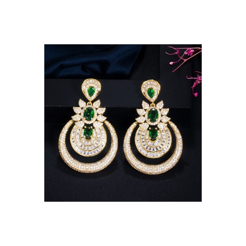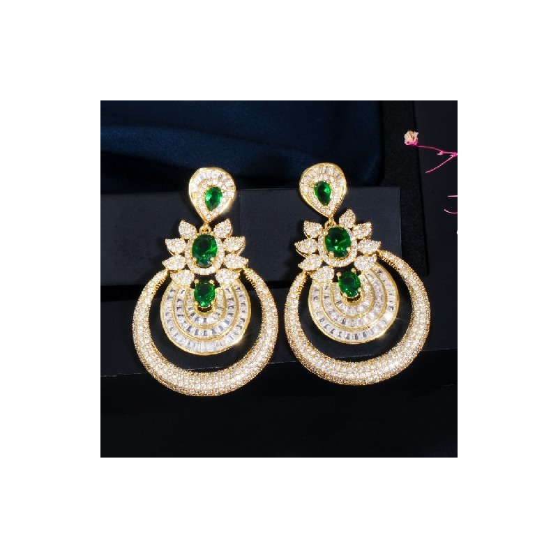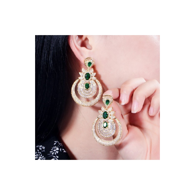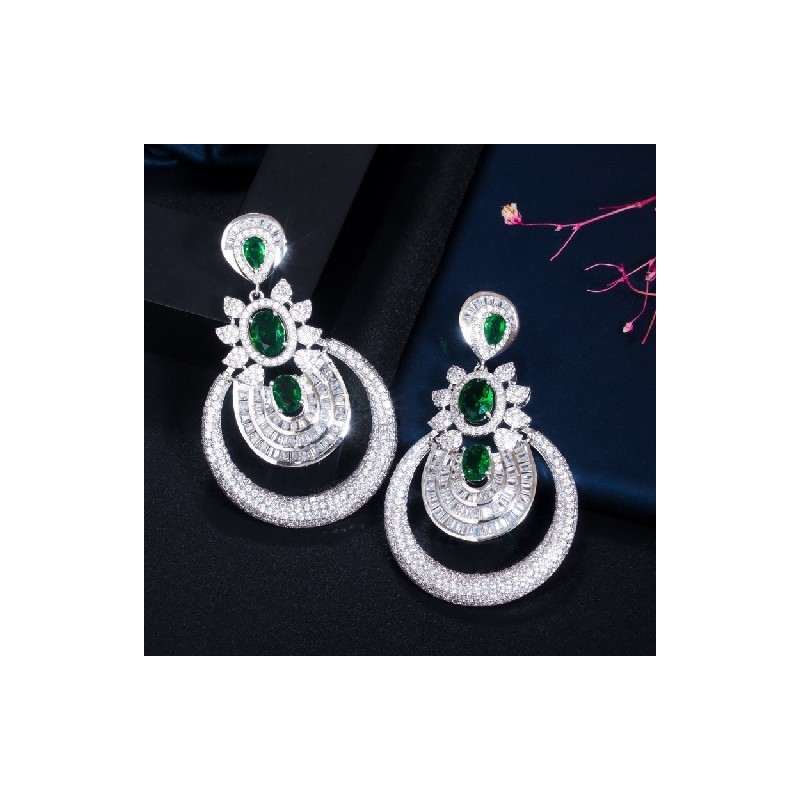 CWWZircons luxus fényes, teljes köbös cirkónia Pave zöld, kerek nagy, hosszú esküvői fülbevaló nőknek, eljegyzési ékszereknek CZ708