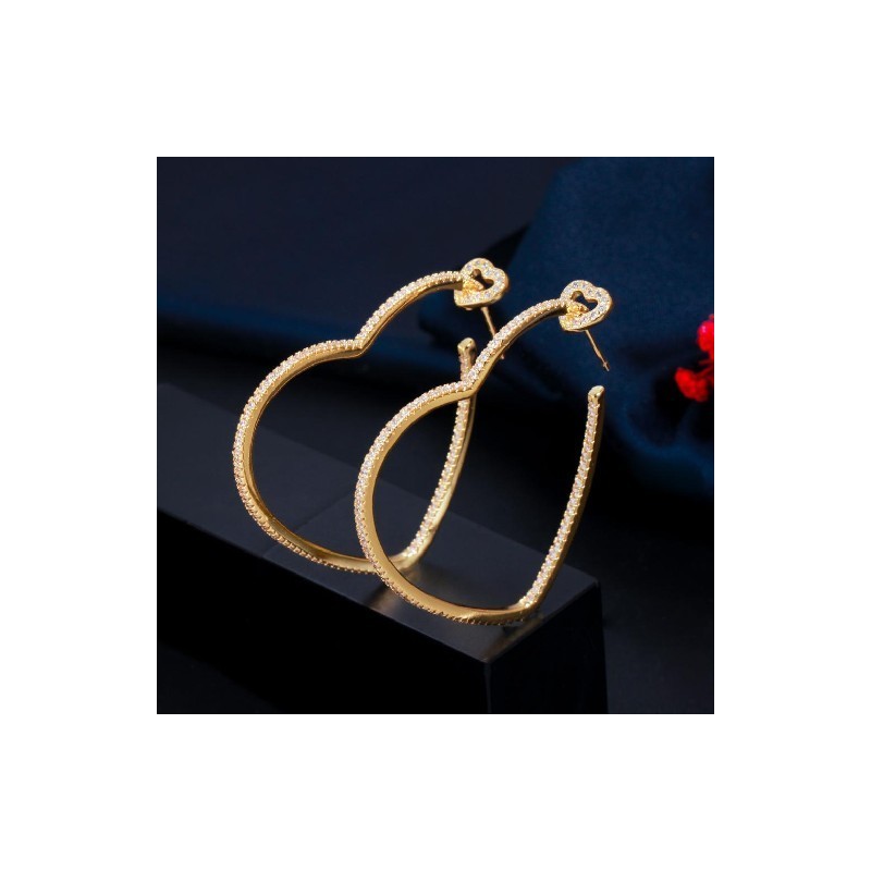 CWWZircons New Trendy White Cubic Zirconia Yellow Gold Color Love Heart Shape Big Hoop Earrings for Women Jewellery Gift CZ799