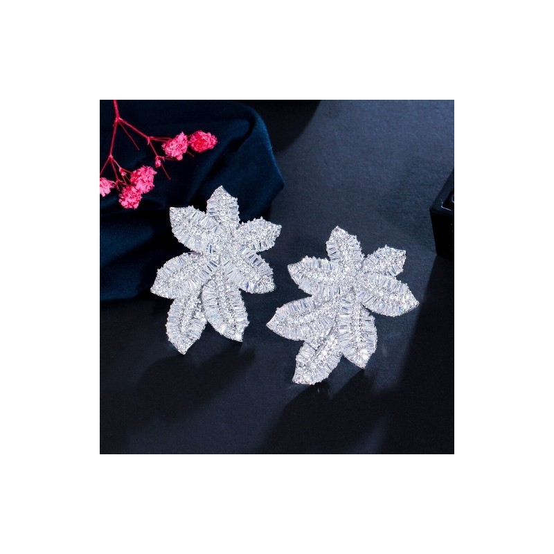 CWWZircon Sparkling Micro Pave African Cubic Zirconia Luxury Long Leaf Drop Earrings for Women Dubai Gold Wedding Jewellery CZ995