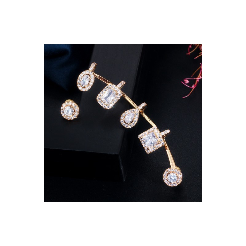 CWWZircons aszimmetrikus fényes fehér köbös cirkónia hosszú fülű hegymászó fülbevaló nőknek Egyedi tervező márkájú ékszer CZ724
